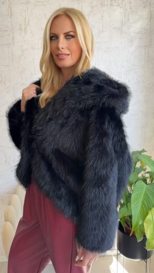 Οικολογική γούνα με κουκούλα- Μαύρο
