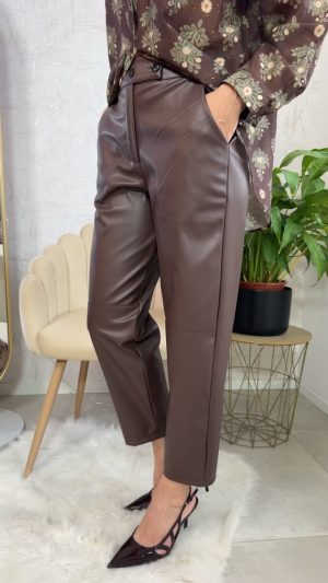 Δερματίνη παντελόνι με λάστιχο στην μέση-Μαυρο